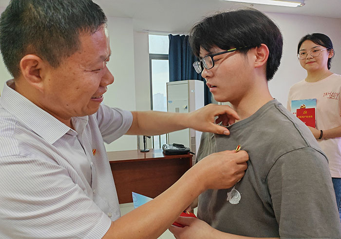 宣誓仪式结束后,骆广东代表学院党委向新发展党员表示热烈祝贺,为他们颁发党章、党徽及纪念贺卡,并向同学们提出四点希望:一是不断加强政治理论学习,不断用习近平新时代中国特色社会主义思想武装自己;二是提高理论联系实际能力,牢记院训精神,饱学中西、知行并进成为大国良医;三是发挥党员先锋模范作用,促进学风、考风、班风建设,争做品学兼优大学生;四是深化思想认识提高站位,拥护“两个确立”、践行“两个维护”,增强党员自身行动自觉。
