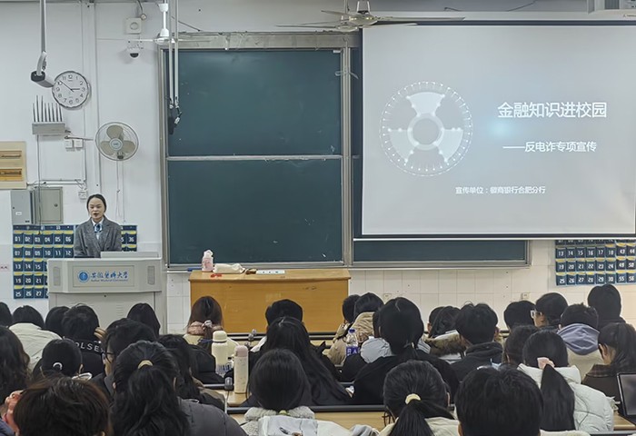 宣讲会上,三里庵派出所刑警从电信网络诈骗现状、常见诈骗类型及防范诈骗的有效方法等方面,就电信诈骗存在的普遍性、电信诈骗手段的多样性以及方式更迭变化的快速性等特征作了深入浅出的介绍;徽商银行合肥分行反诈宣传工作人员结合警示案例,对网络电信诈骗心理进行解析,阐述了参与电诈会面临的法律后果。现场还开展了网络安全教育知识有奖竞猜互动问答,同学们积极参与,气氛热烈。